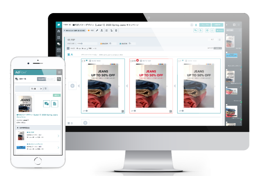 制作進行と管理に必要な機能は全てAdFlowにあります。チャット・制作物管理・稿数管理・修正指示・スケジュール…。もうわざわざ他のツールを立ち上げる必要はありません。